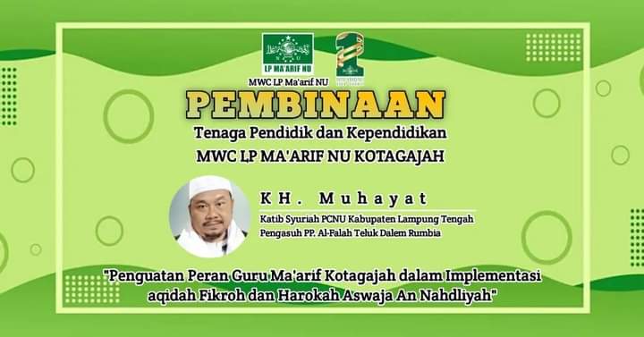 Pembinaan 104 Tenaga Pendidik dan 17 Tenaga Kependidikan MWC.LP MA’ARIF NU Kotagajah. Sabtu,07 Januari 2023
